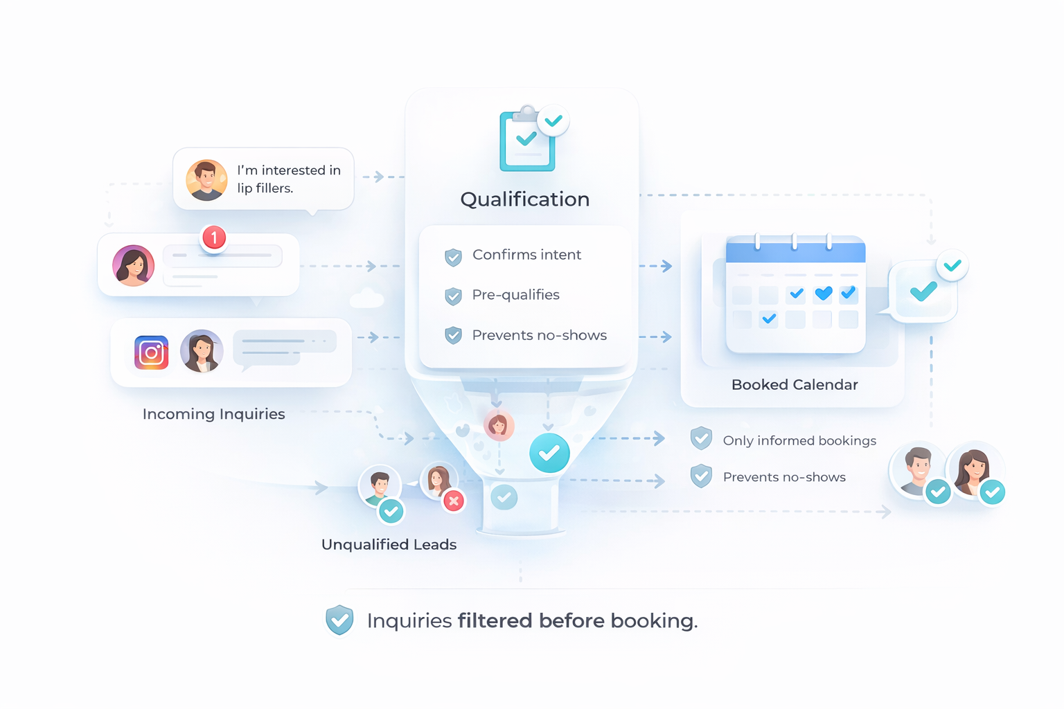 A structured system that helps aesthetic practices generate predictable consultation demand, reduce lead waste, and automatically book the right patients directly into your calendar — without adding operational chaos.